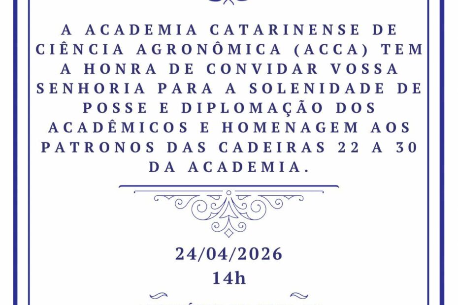 FEAGRO-SC participa da cerimônia histórica de posse dos acadêmicos fundadores da Academia Catarinense de Ciência Agronômica3 de outubro de 20253 de outubro de 2025Notícias